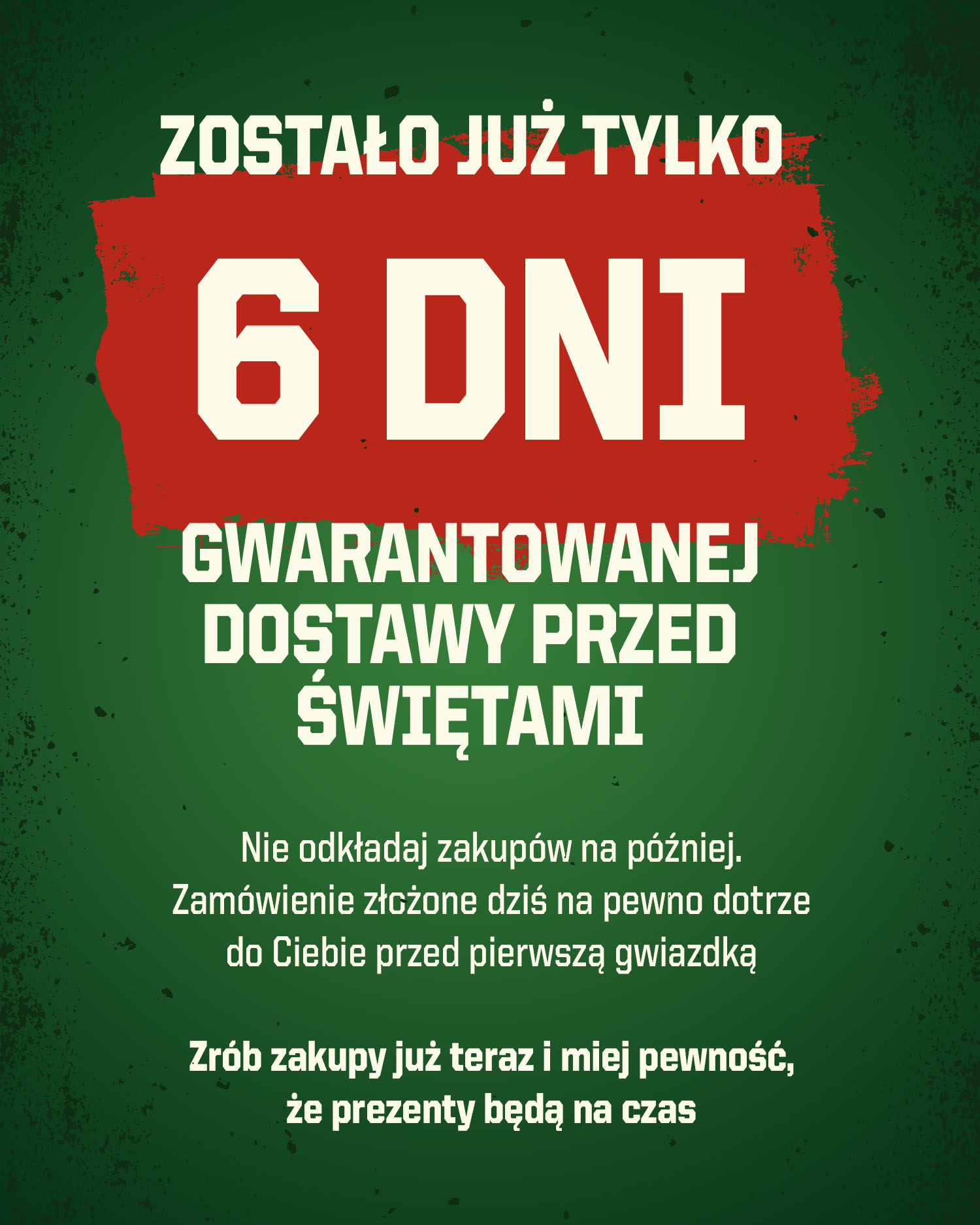 Zostało już tylko 6 dni gwarantowanej dostawy przed Świętami!