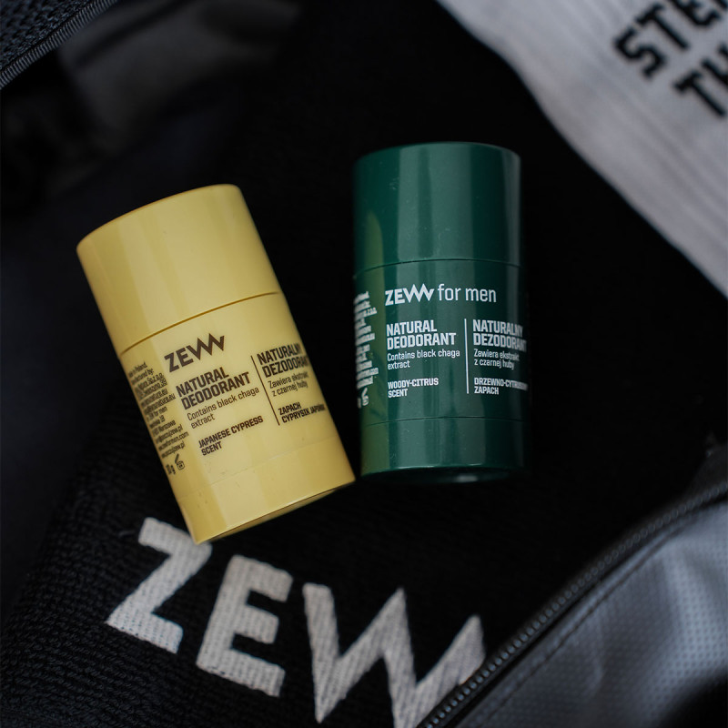 Naturalny dezodorant ZEW to przemyślana formuła, która zapewnia skuteczną ochronę i codzienny komfort. Zawiera fermentowany filtrat drożdżowy neutralizujący nieprzyjemne zapachy, ziemię okrzemkową i skrobię z manioku pochłaniające wilgoć oraz kojący ekstrakt z czarnej huby – ceniony za działanie przeciwzapalne. To dezodorant bez aluminium i alkoholu, który wspiera naturalną barierę skóry i nie powoduje podrażnień – nawet przy intensywnym trybie życia.