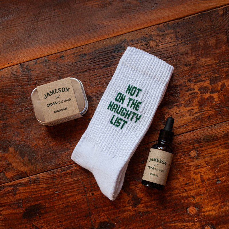 Całość uzupełniają skarpetki ZEW for men × WARSAW SAINTS „Not on the Naughty List” – stylowy dodatek z dystansem, idealny na prezent.