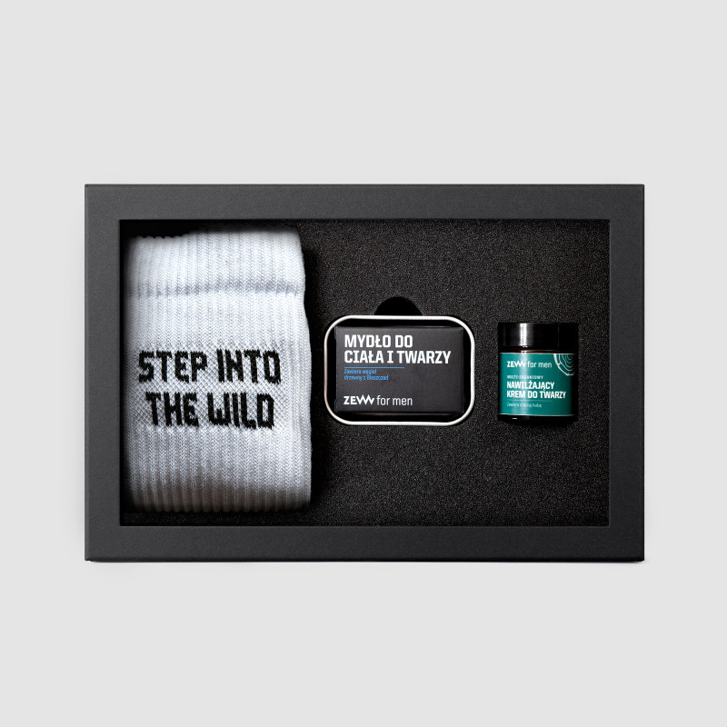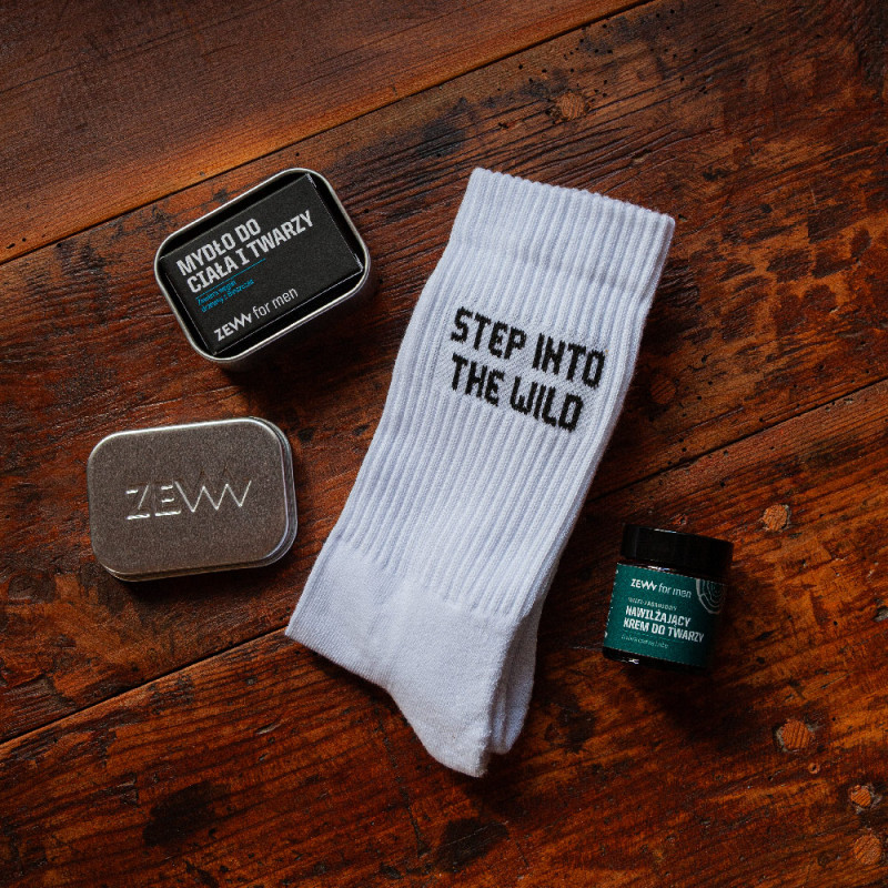 Znajdziesz w nim wszystko, czego potrzebujesz, by zadbać o skórę i zachować świeżość w każdych warunkach. A skarpetki ZEW for men × WARSAW SAINTS „Step into the wild” dodają całości energii i przypominają, że warto iść własną drogą – na szlaku i na co dzień.